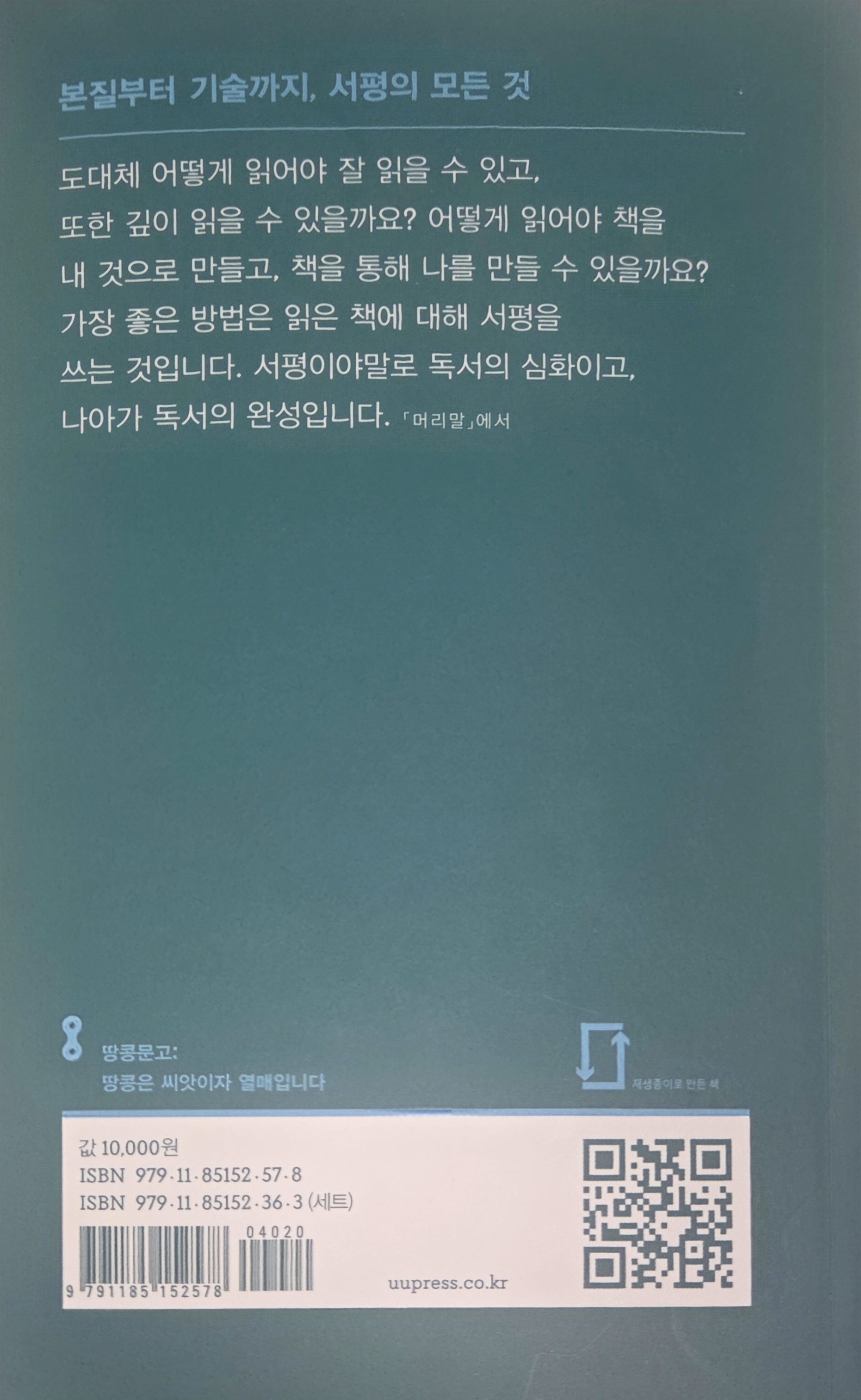 이 책은 서평이 어떤 것이고 어떻게 써야 하는지? 서평을 쓸려고 하면 책을 어떻게 읽어야 하는지 등에 대해서 말하고 있다.